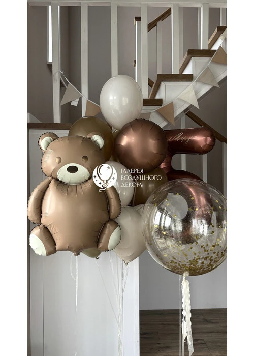 Набор гелиевых шаров с Мишкой Барни и цифрой №14 — отзывы