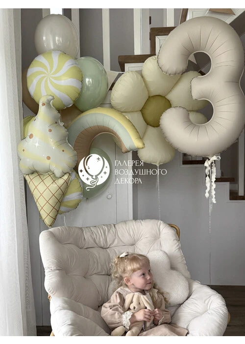 Набор воздушных шаров для девочки со связкой шаров и мороженым №17 — отзывы