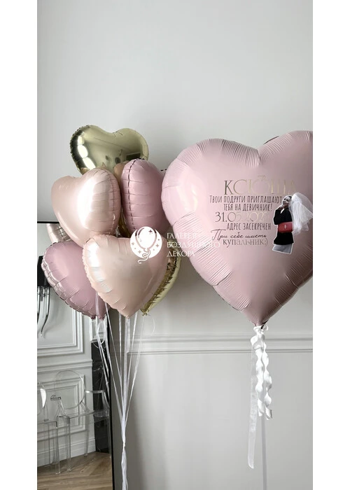Набор гелиевых шаров на девичник с метровым сердцем с надписью и фото №20