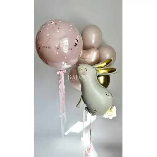 Набор шаров на выписку для девочки в розовом цвете с бантиком №12