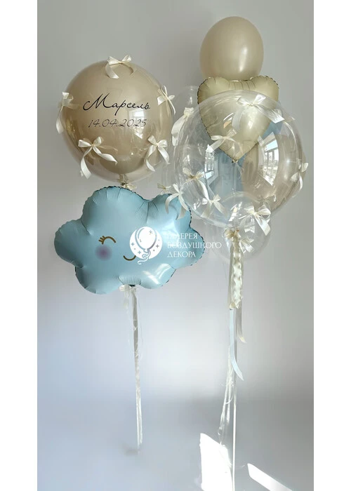 Набор воздушных шаров на выписку с голубым облаком №28