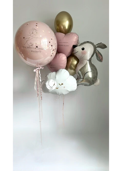 Набор шариков на выписку для девочки с зайчиком №36