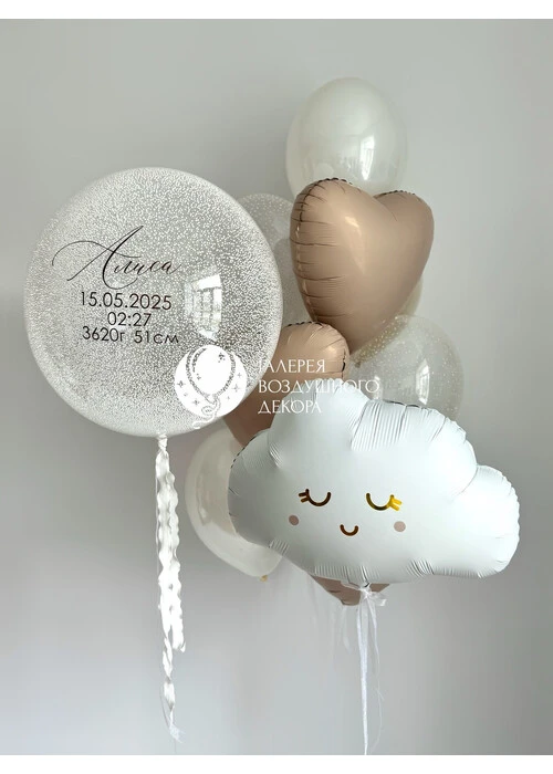 Набор шаров на выписку с шаром наполненным пернопластом №40
