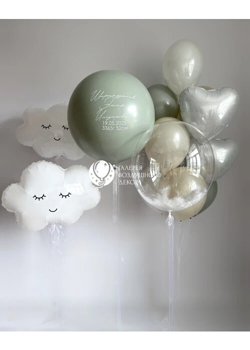 Сет из воздушных шаров на выписку с облоками и большим шаром с метрикой №42 — отзывы