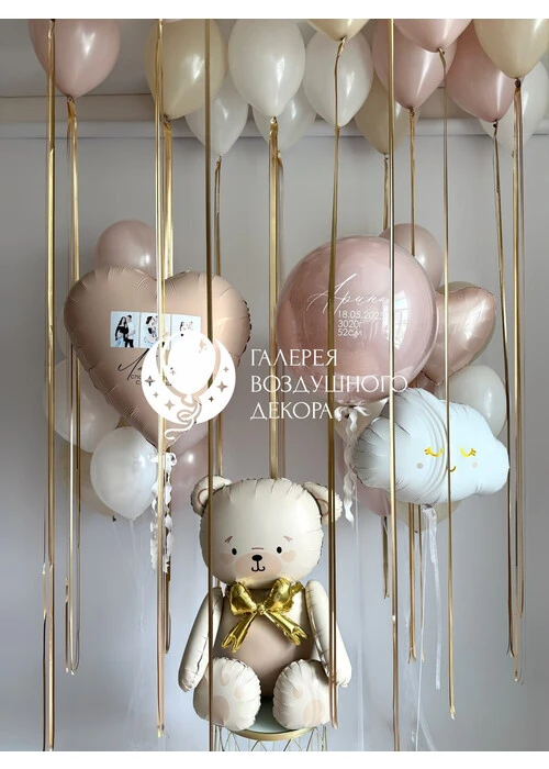 Набор гелиевых шаров на выписку с напольной фигуроцй Мишка с бантом №43 — отзывы