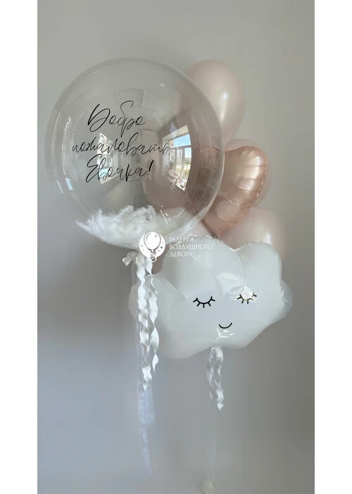 Набор воздушных шариков на выписку с бабл с перьями и связкой шаров №44 — отзывы