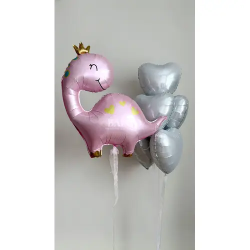 Набор гелиевых шаров для девочки с розовым динозавриком №86