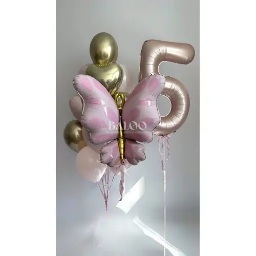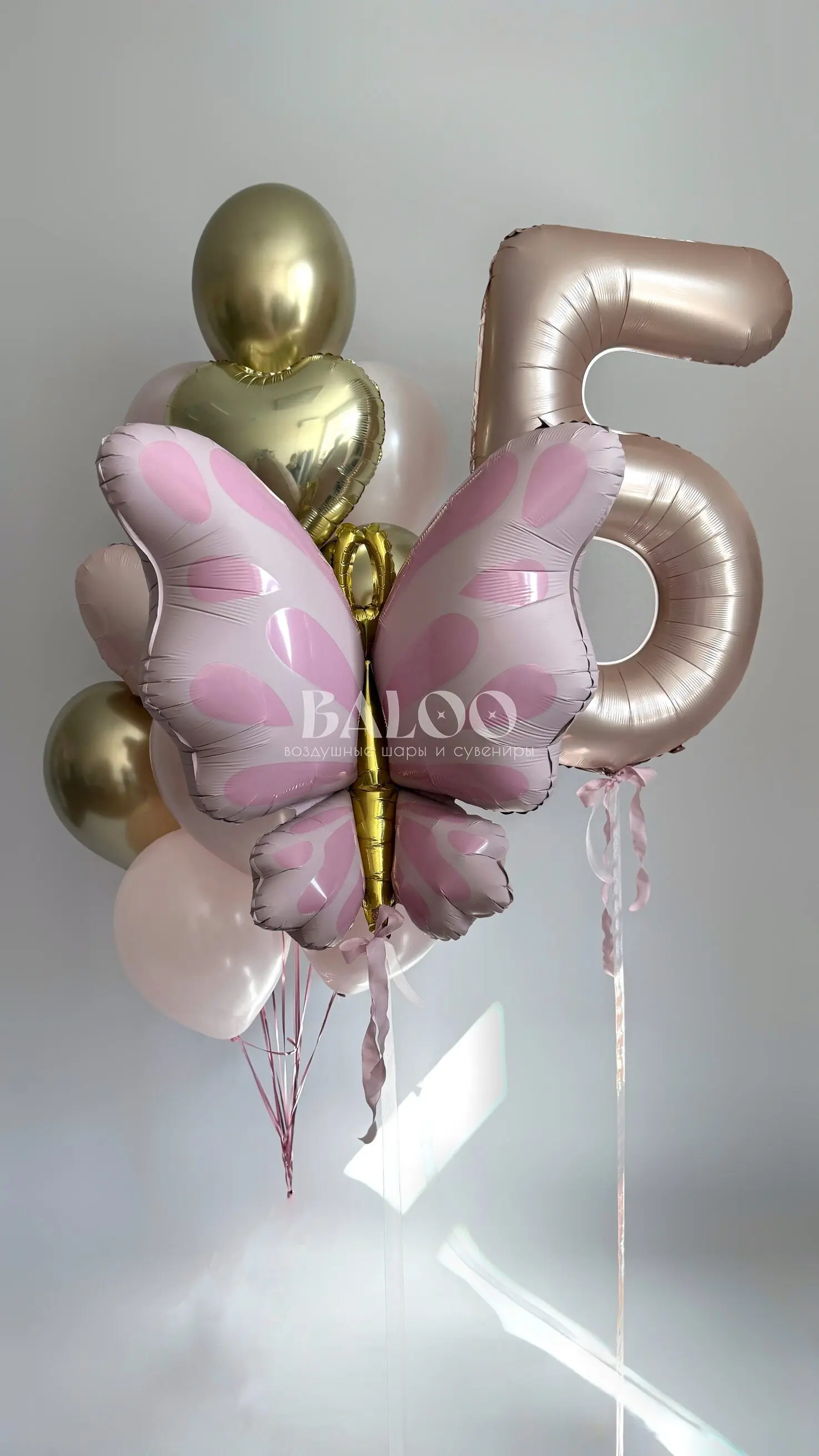 Набор гелиевых шаров для девочки в розово-золотом цвете с бабочкой №93 — отзывы
