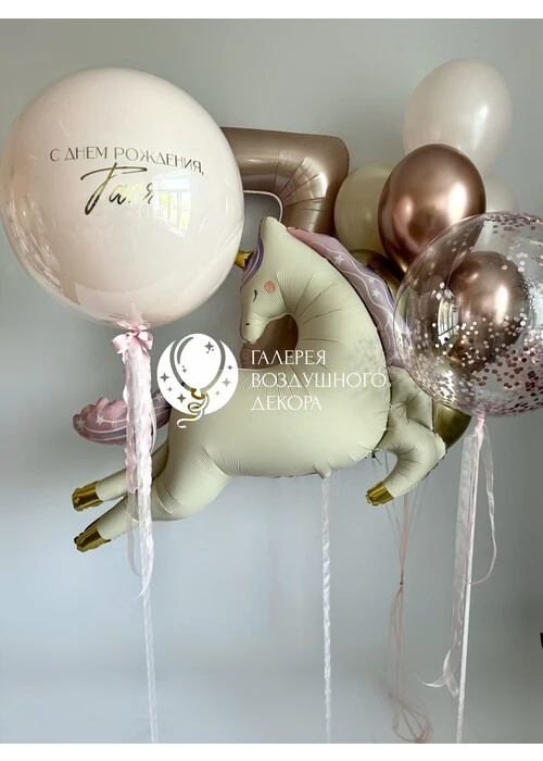 Набор воздушных шаров для девочки с единорогом и цифрой №98