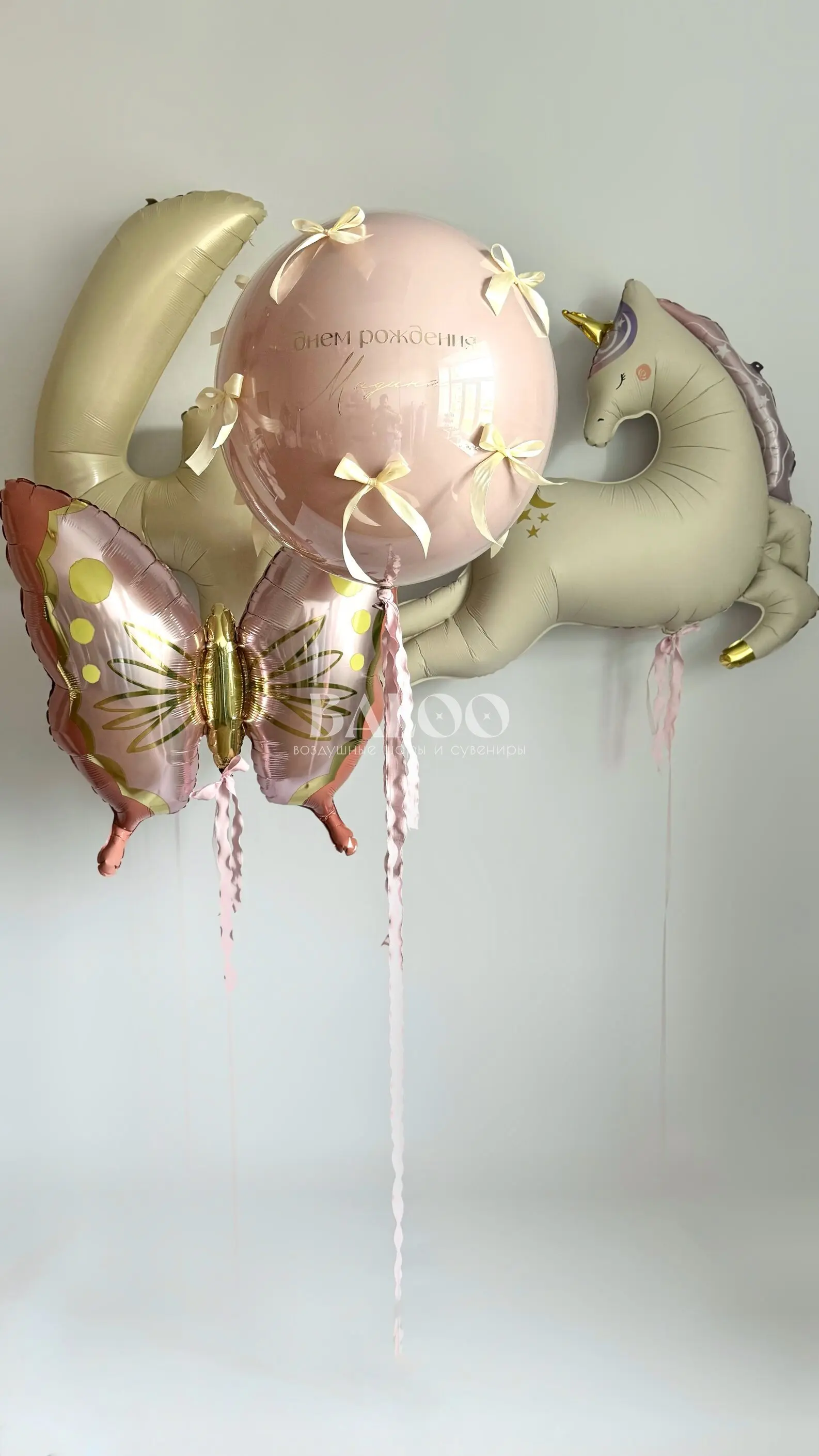 Набор гелиевых шаров для девочки с бабочкой и единорогом №103