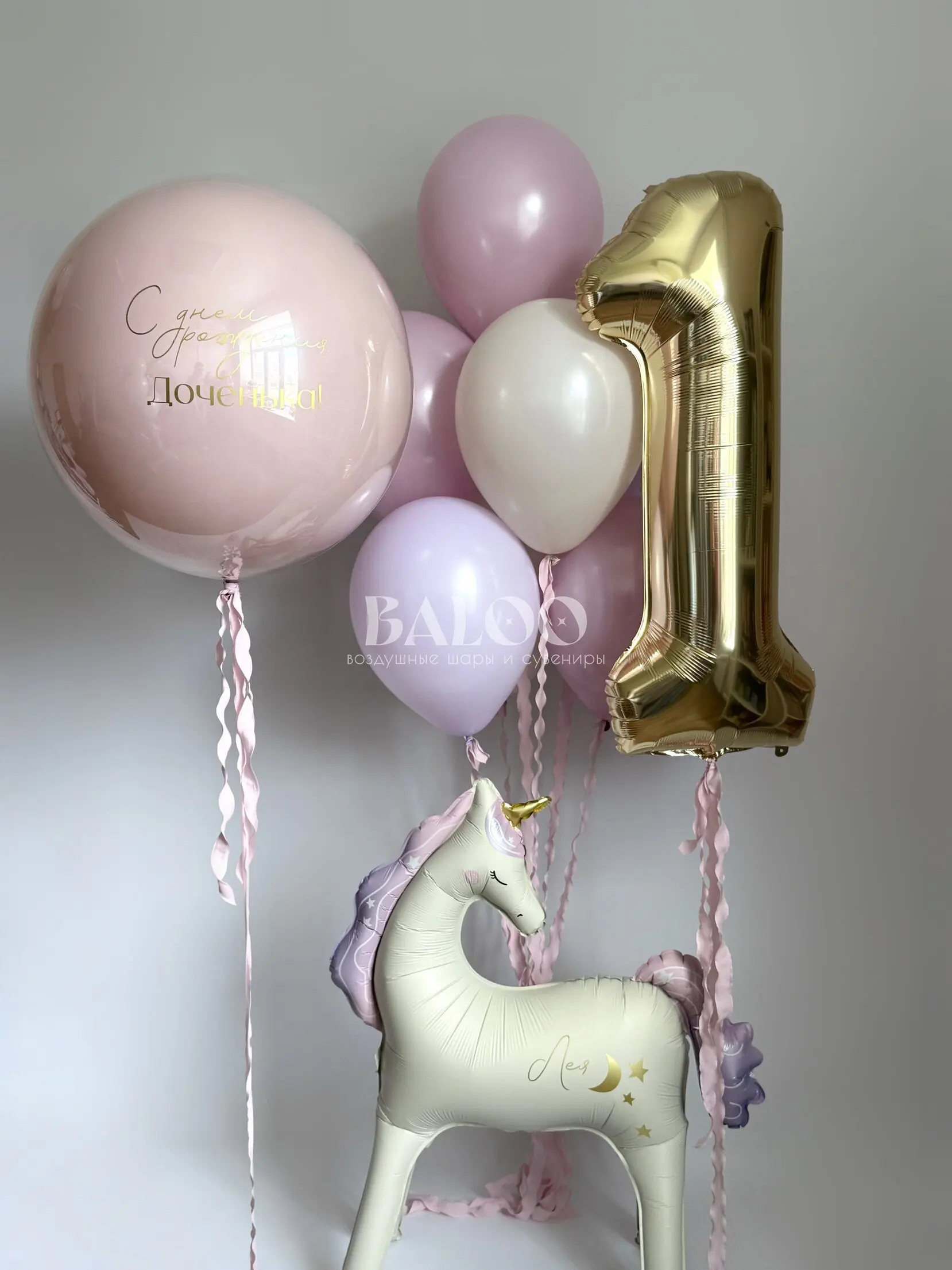 Набор гелиевых шаров для девочки на годик с единорогом №126 — отзывы