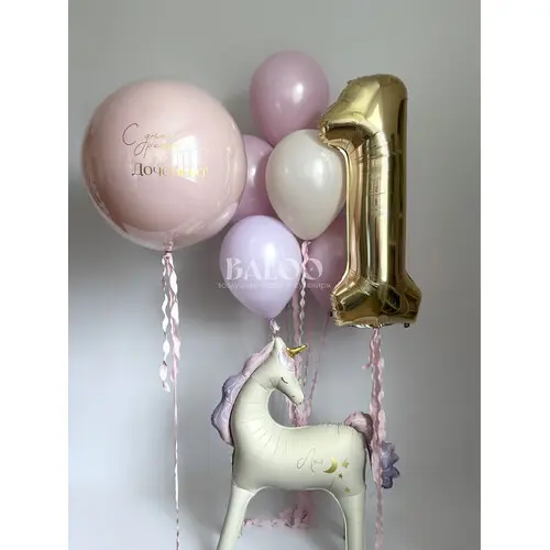 Набор гелиевых шаров для девочки на годик с единорогом №126