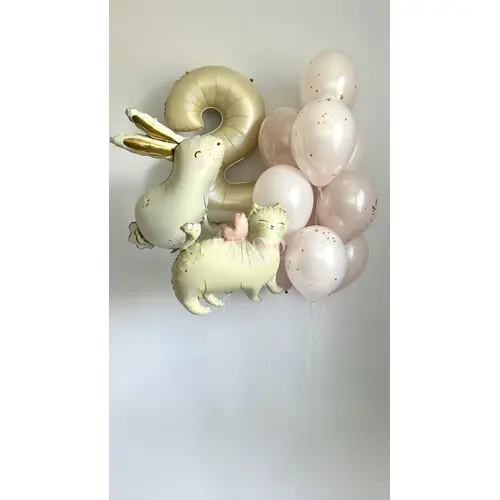 Шабор гелиевых шаров для девочки с кошечкой и зайчиком №128