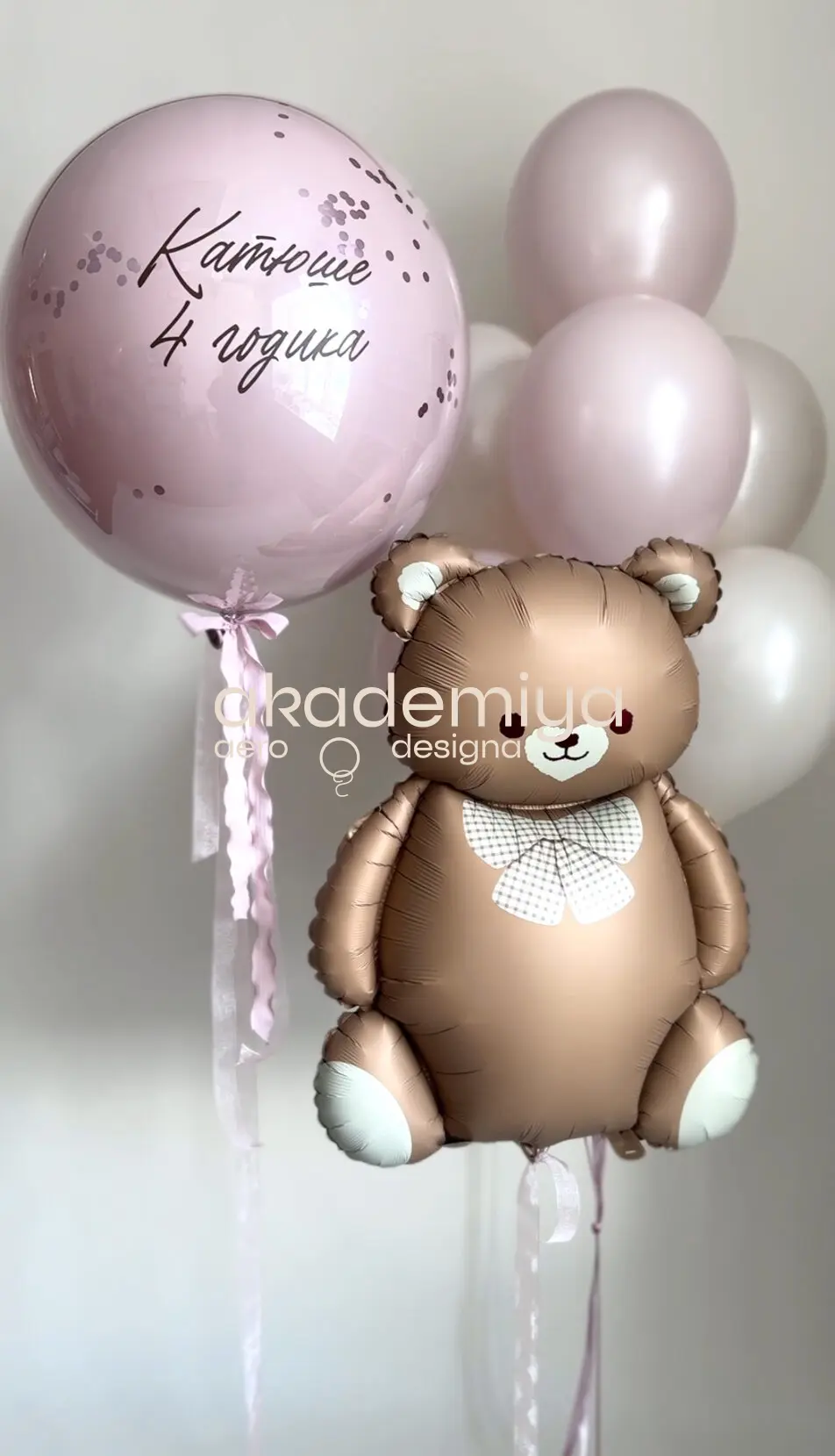 Набор гелиевых шаров пудрового цвета с мишкой №132 — отзывы