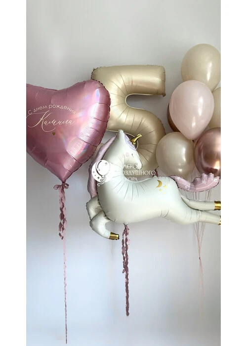 Набор воздушных шаров для девочки с большим сердцем и единорогом №134