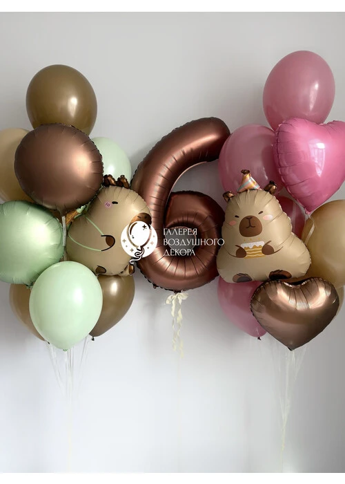 Набор гелиевых шаров для девочки с капибарами №141