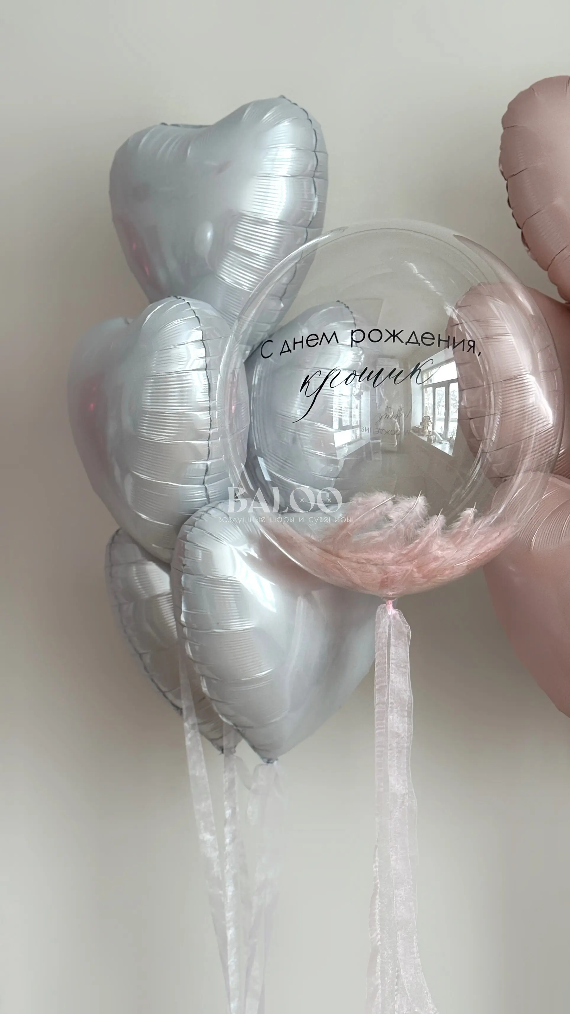 Набор воздушных шаров с бабл шаром с перьями для девушки №151 — отзывы