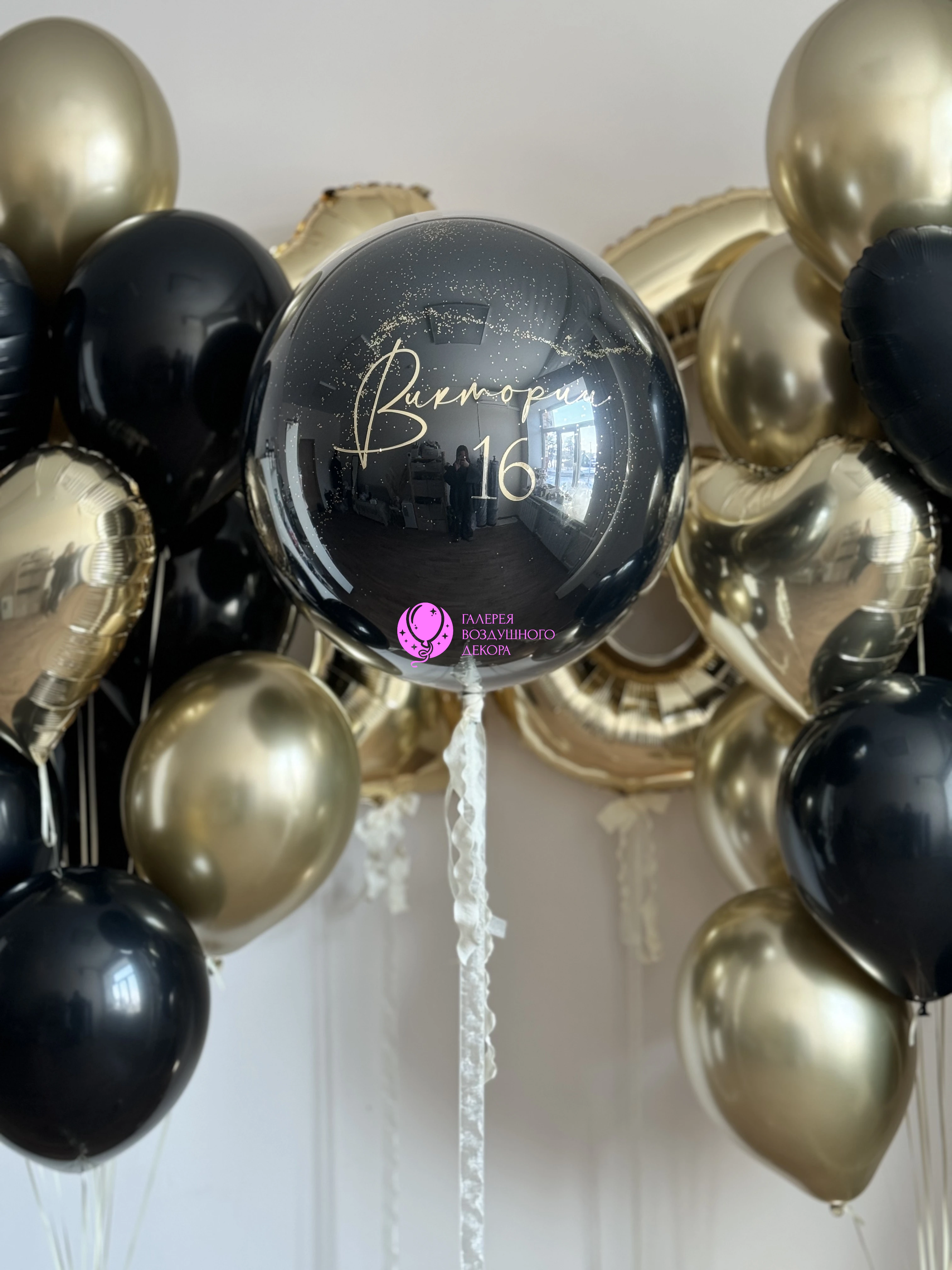 Набор гелиевых шаров для девушки в черно-золотом цвете №156