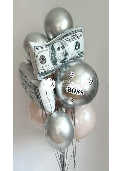 Связка из 8 латексных шаров, латексный шар 18 дюймов с надписями, 2 фольгированные фигуры долар