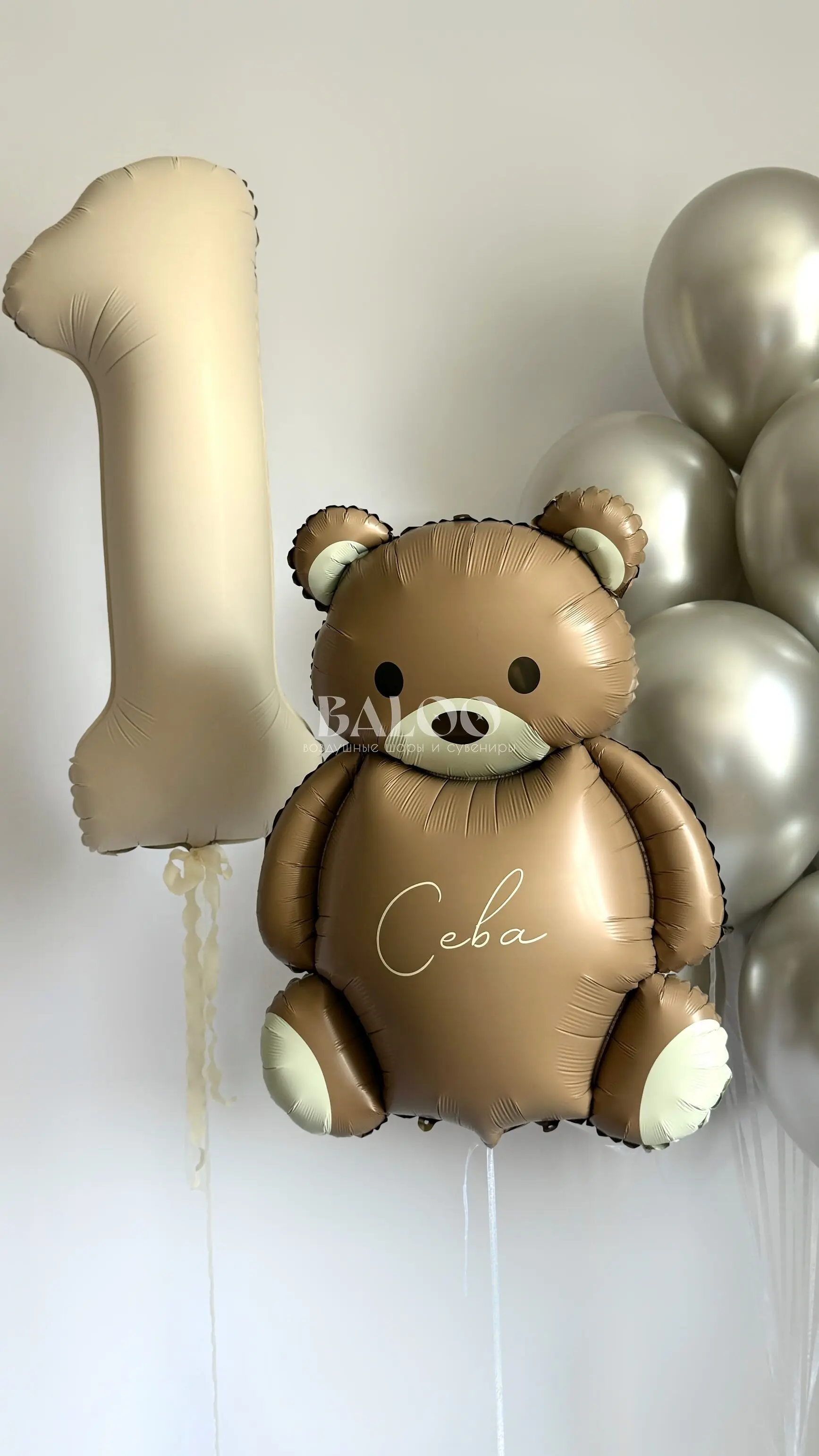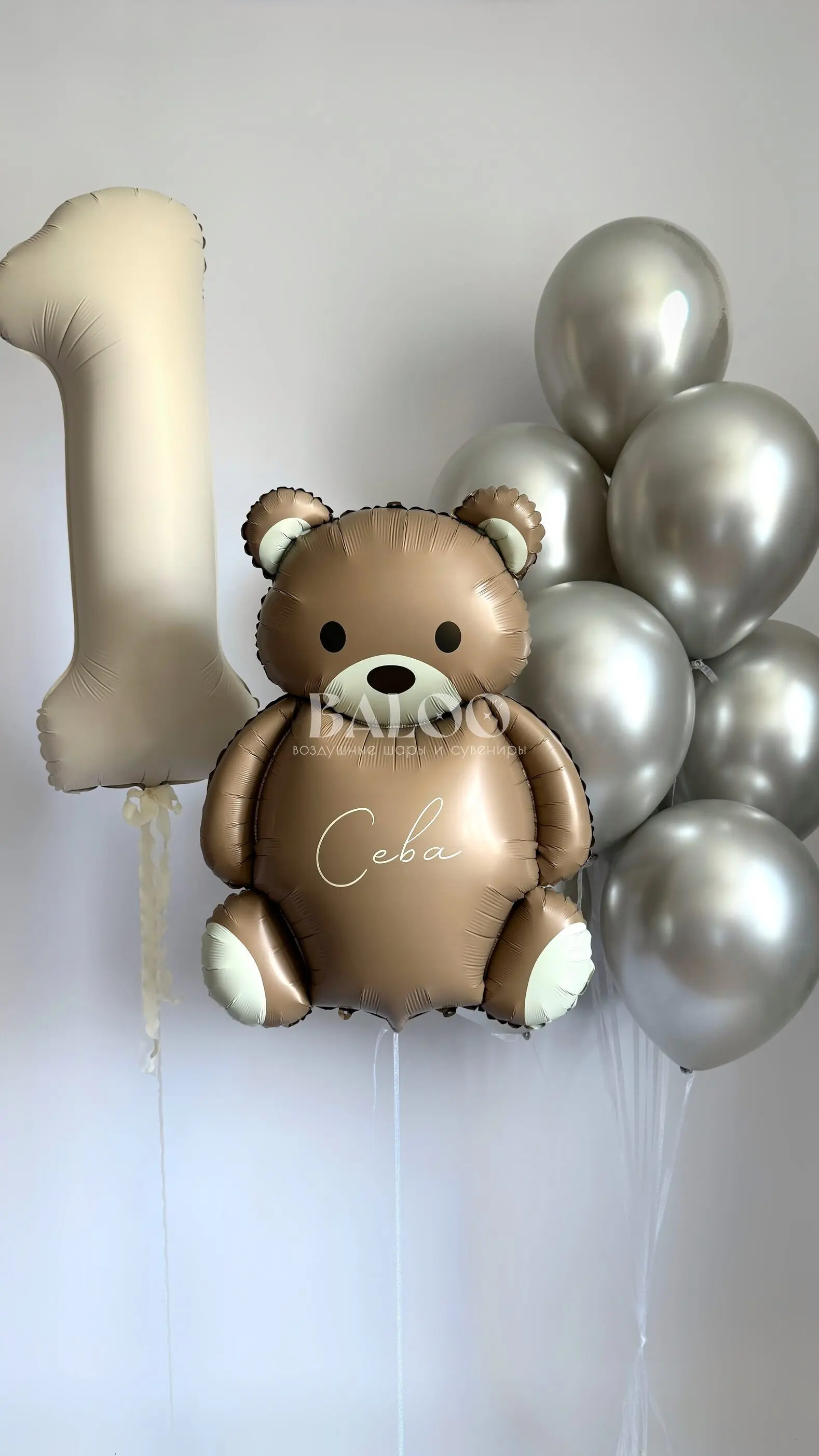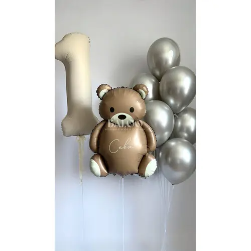 Набор воздушных шариков для мальчика на годик с мишкой №241