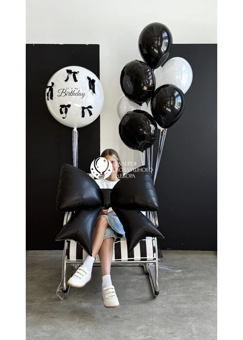 Набор гелиевых шаров для девушки черно-белого цвета №5