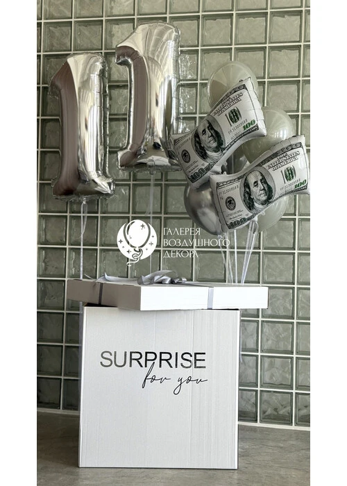 Набор гелиевых шаров с коробкой сюрпризом с цифрами №7