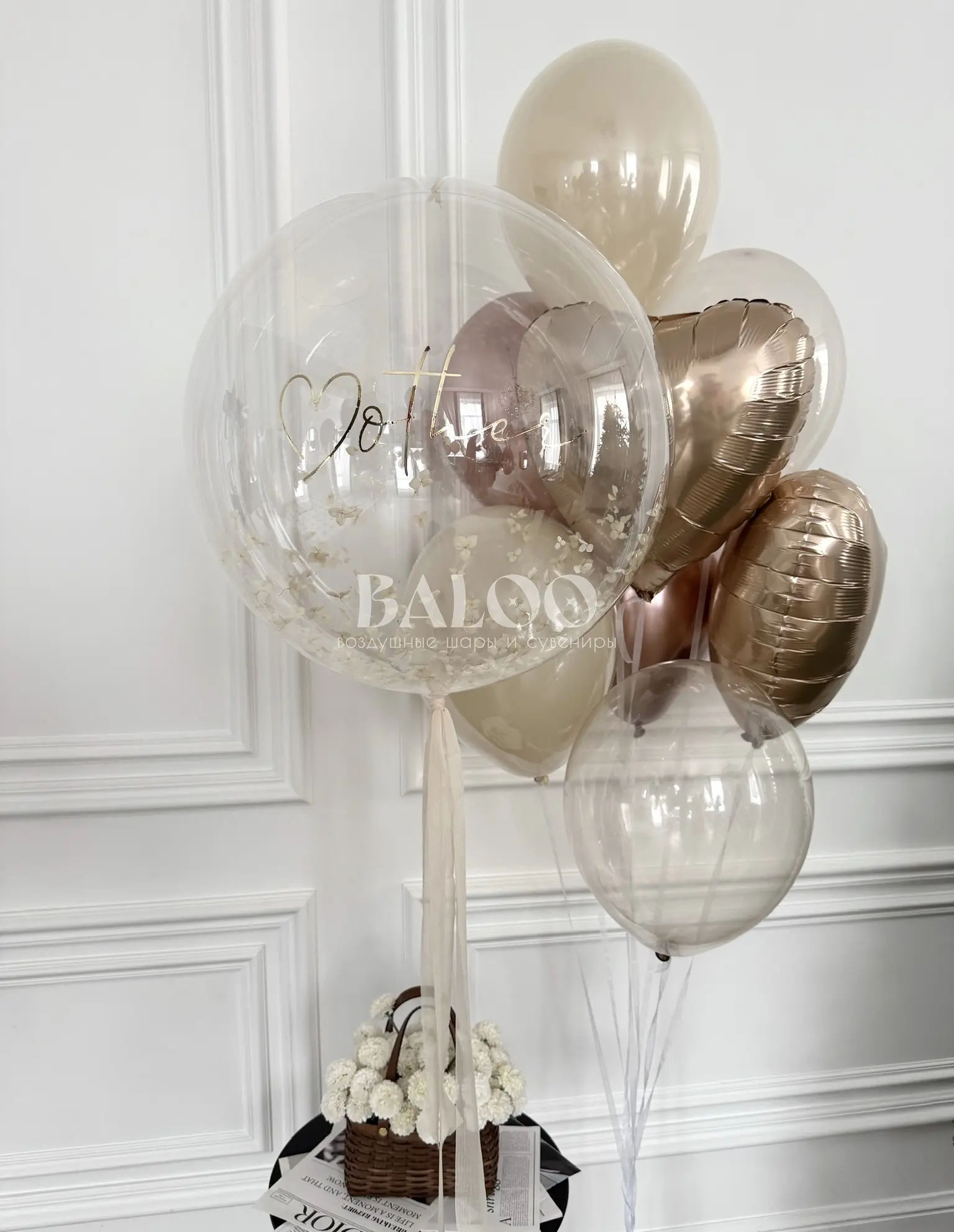 Бабл шар с гортензией и надписью
