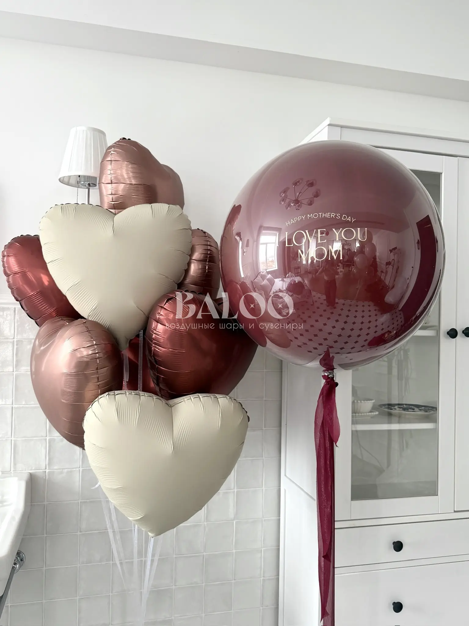 Набор гелиевых шаров для мамы с связкой из сердец №3