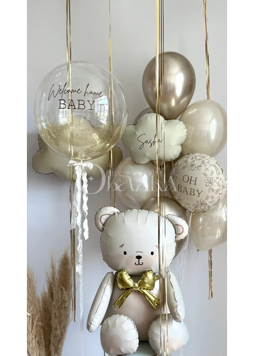 Набор воздушных шаров на выписку с сидячим мишкой №1681