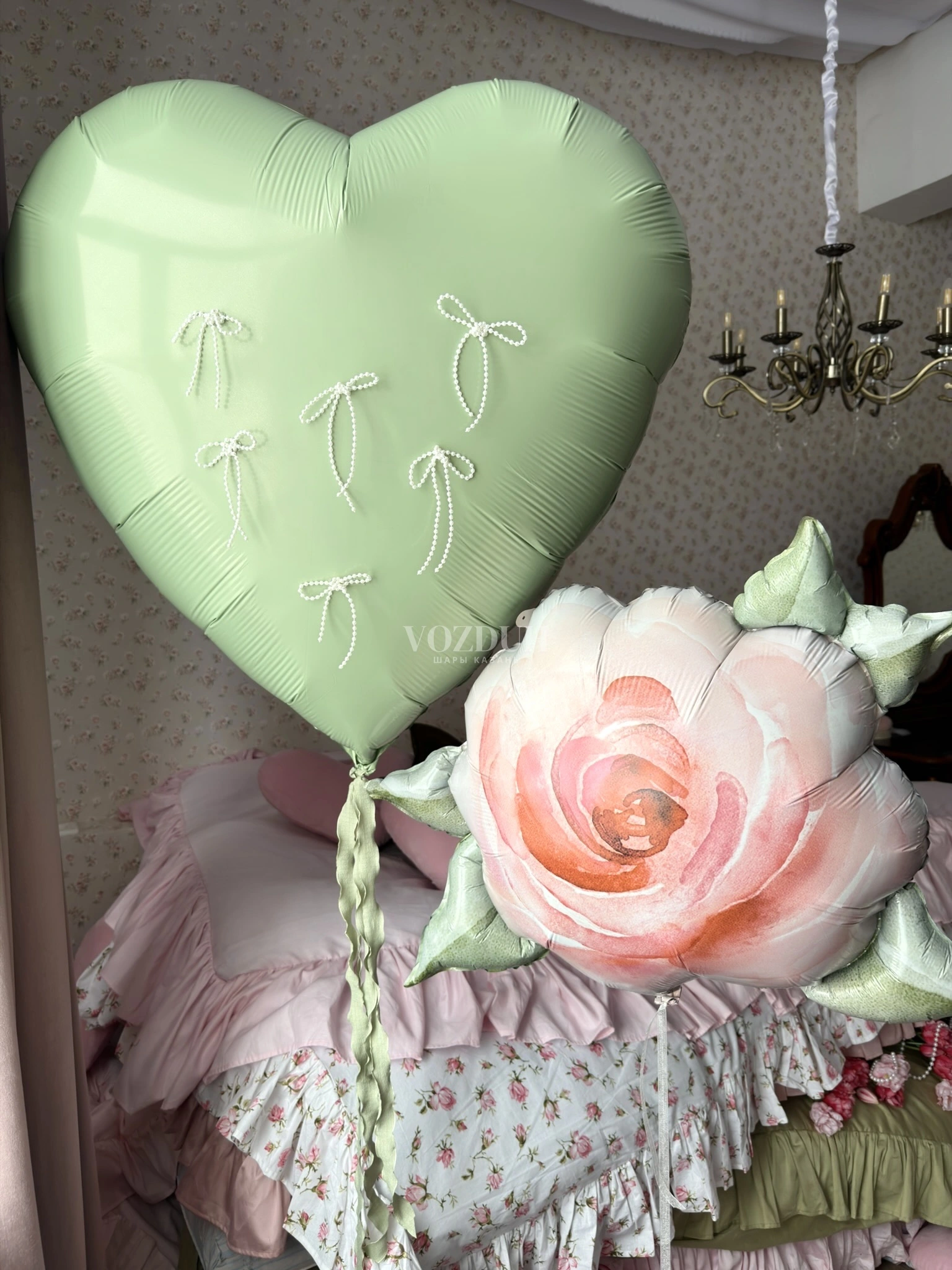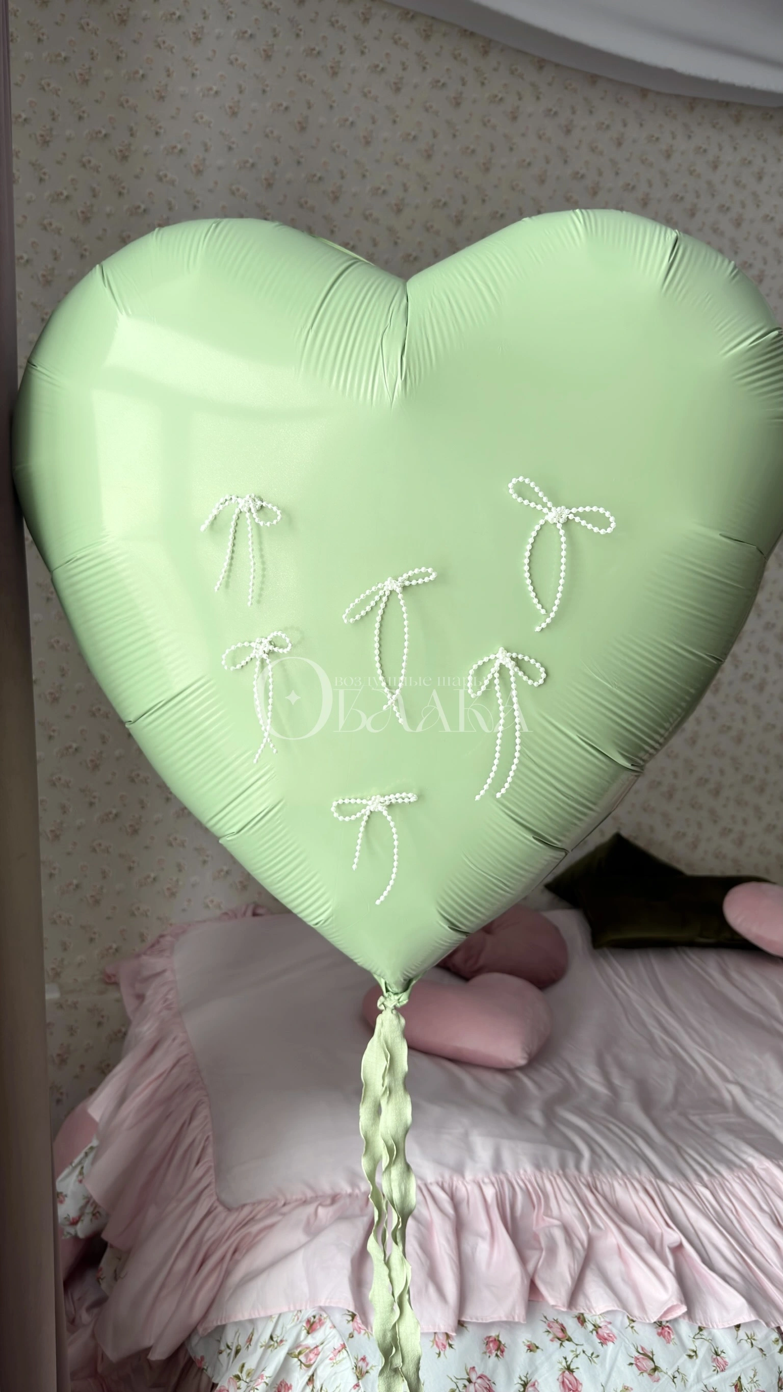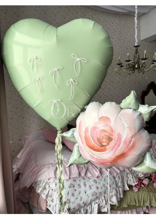 Для тех, кто ценит уникальность. Метровое сердце, декорированное нежными жемчужными бантами, само по себе выглядит шикарно. А в паре с дополнительной фигурой (вы можете выбрать цифру, звезду, круг или маленькое сердце) получается гармоничный ансамбль. Идеально для оформления фотозоны на свадьбе, юбилее или 8 марта. Шары качественные, гелиевые, сердце не требует груза – оно устойчиво парит.