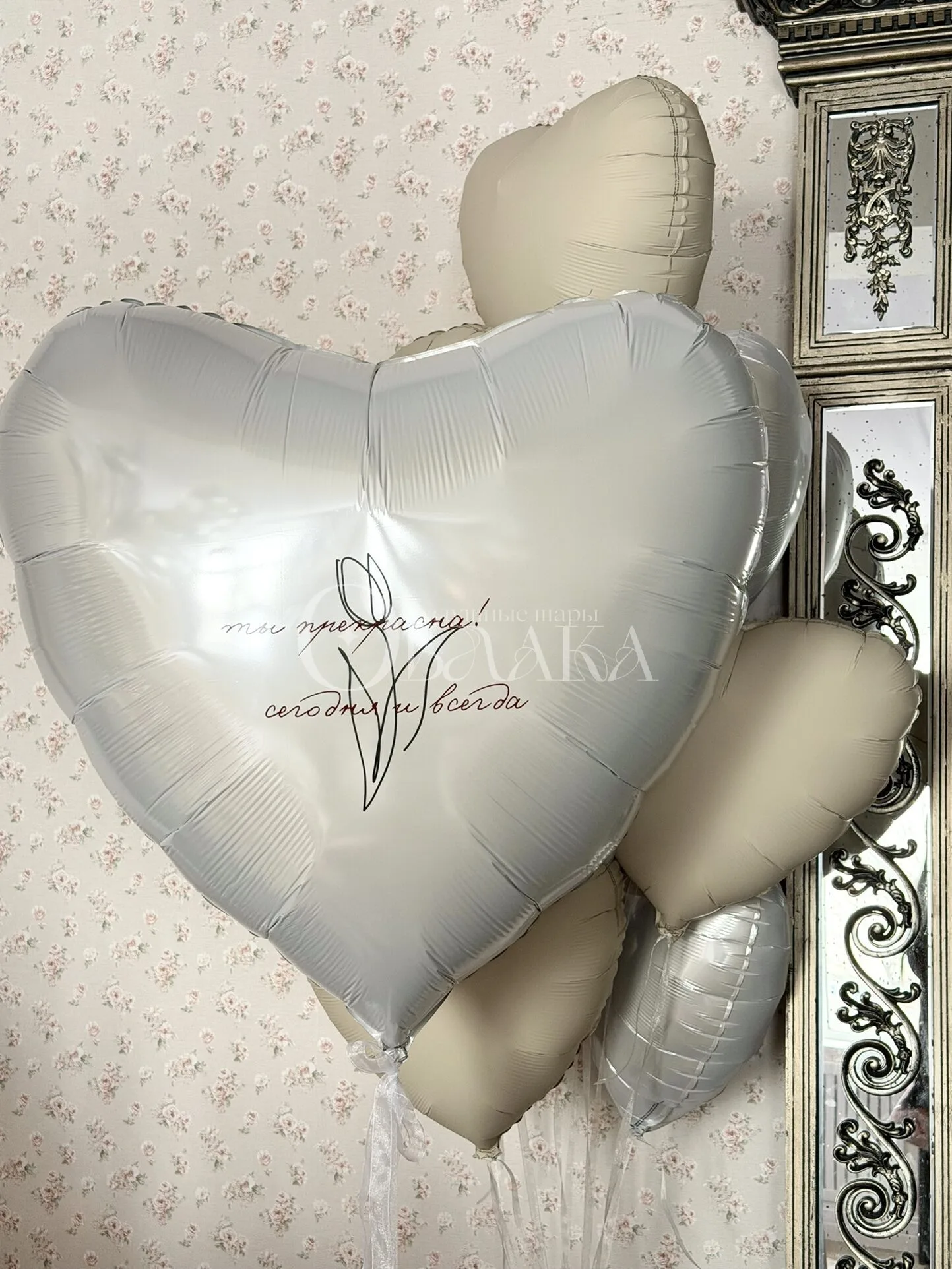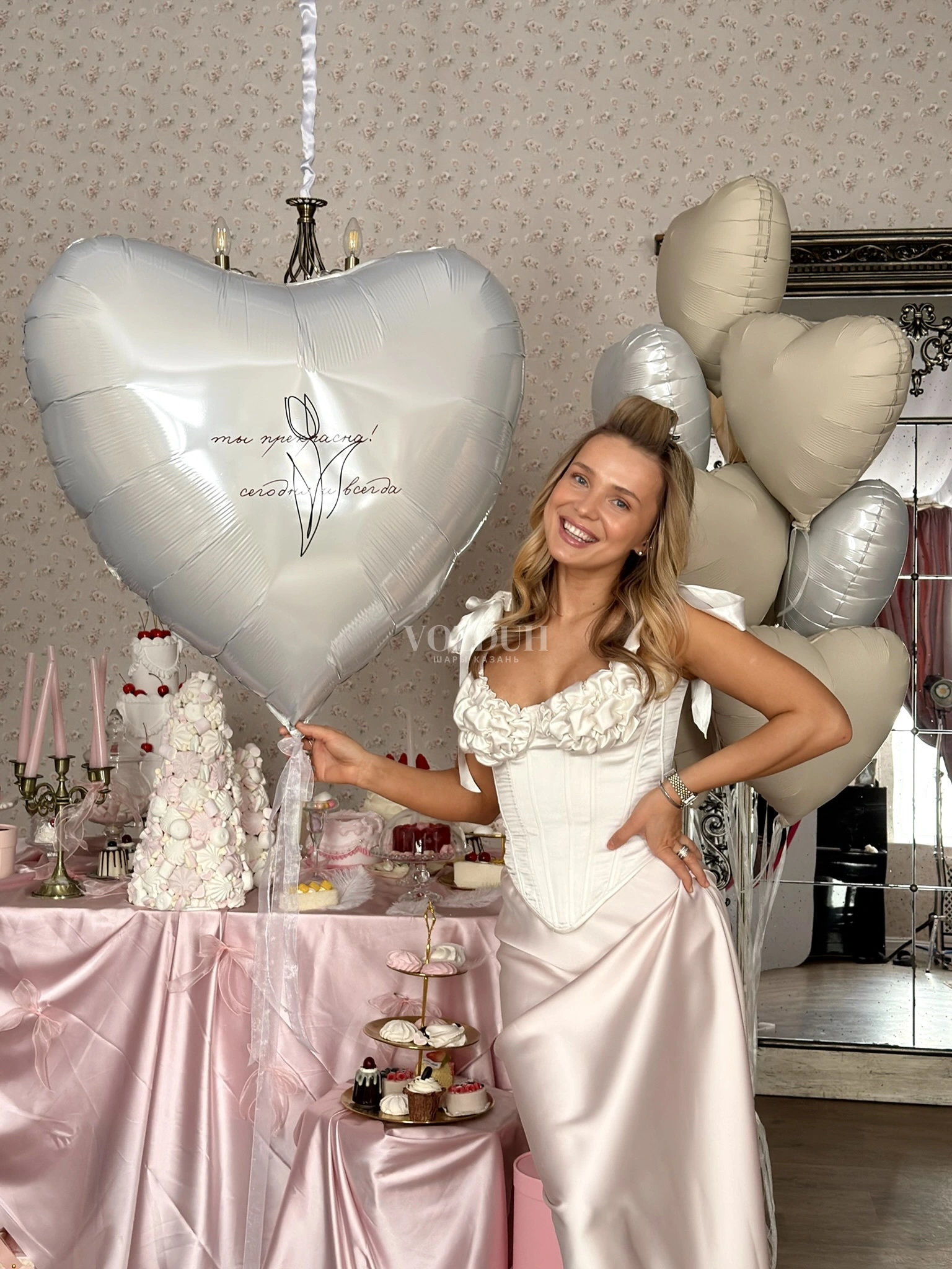 Этот набор буквально кричит о ваших чувствах. Огромное метровое сердце с надписью «С 8 марта» или «Люблю» будет главным акцентом подарка. А вокруг него (или в связке) парят 10 нежных латексных сердец, создавая эффект множества поцелуев. Композиция отлично подходит для фотосессий и для личного вручения. Все шары наполнены гелием, обработаны для долгой жизни.